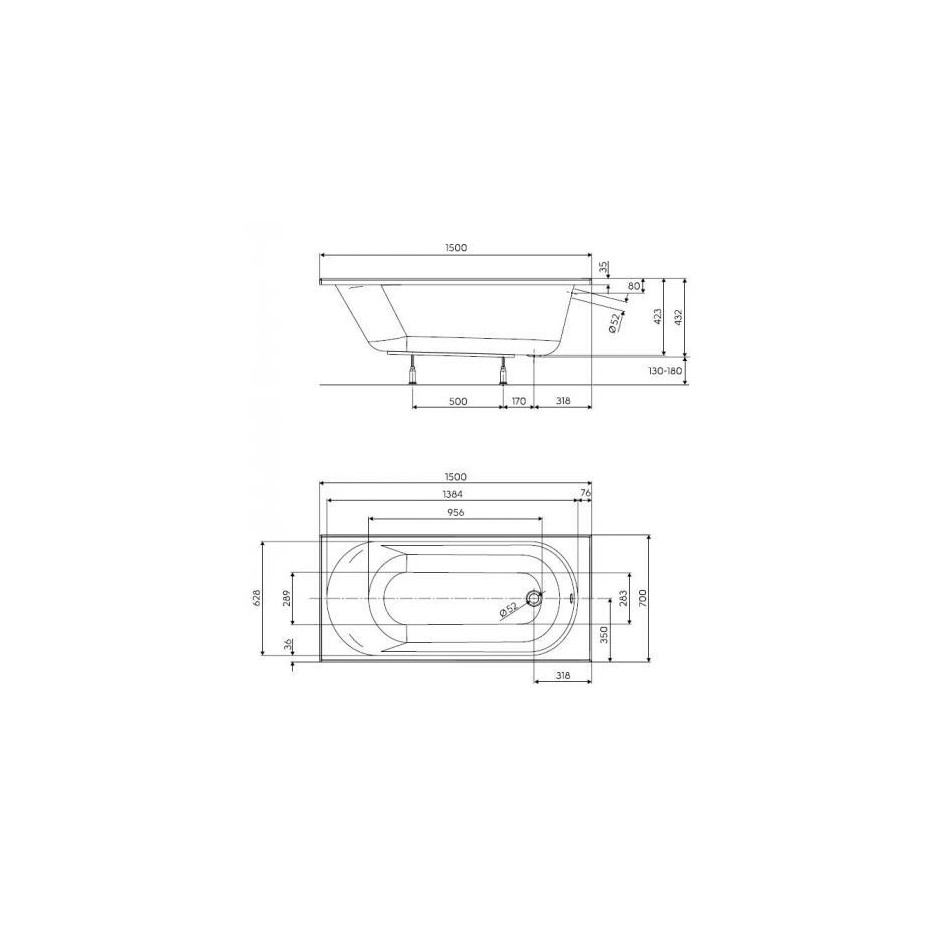 Wanna z serii Opal Plus to prostokątna wanna o wymiarach 150x70 cm, głębokości 42cm oraz pojemności 160 l. Odpływ wanny jest umieszczony przy jednej ze ścianek. Polecamy do wanny Mcalpine Syfon wannowy chrom HC31M-N1. W zestawie znajduje się komplet montażowy (nóżki ) SN0. Wannę można kompletować z parawanem nawannowym Split