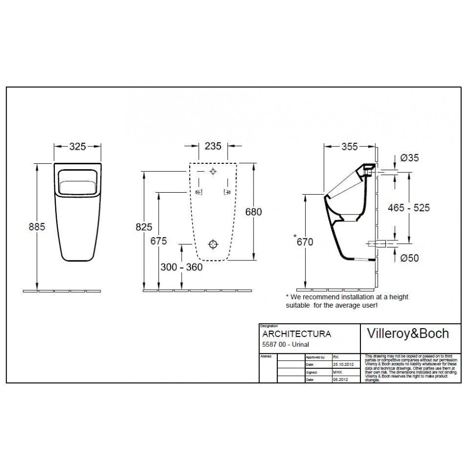 Pisuar z odsysaniem w kolorze białym od marki Villeroy & Boch z serii Architectura. Wymiary produktu wynoszą 35,8 x 32,5 x 68 cm. Pisuar przeznaczony jest do montażu wiszącego, elementy mocujące zawarte są w zestawie. Z powłoką CeramicPlus, która ogranicza przywieranie zanieczyszczeń.